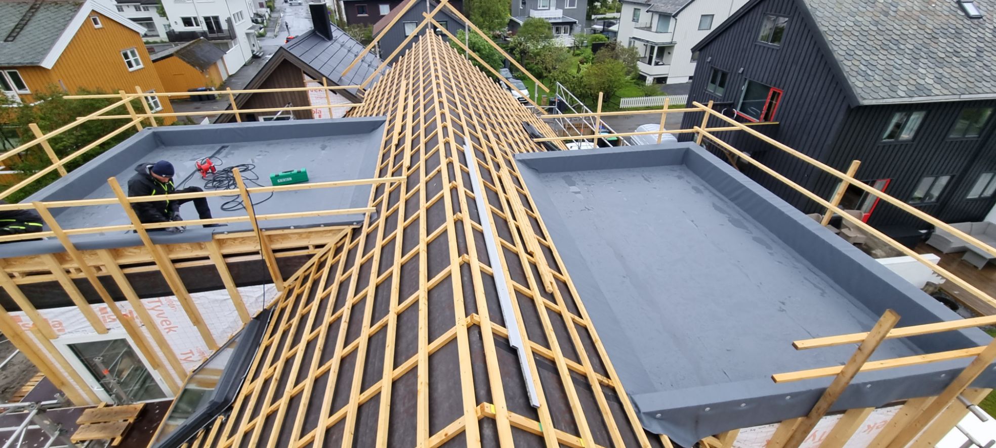 Tak isolert og tekket med Pvc og Bitumen